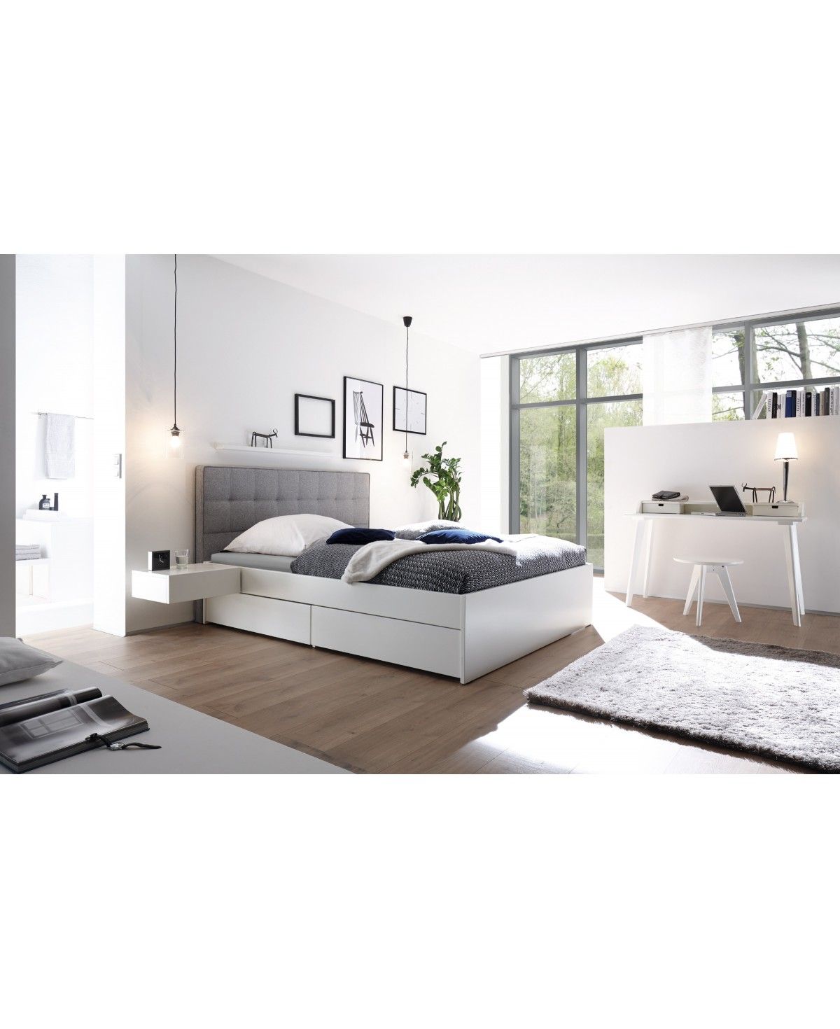 Modernes und elegantes Funtktionsbett Elito von Hasena in der Farbvariante weiß deckend lackiert und mit zwei geräumigen Schubladen auf jeder Seite. Die insgesamt vier Schubkästen schaffen viel Platz unter dem Bett und bieten auch in kleineren Schlafräumen einen echten Mehrwert um den kostbaren Platz sinnvoll nutzen zu können.