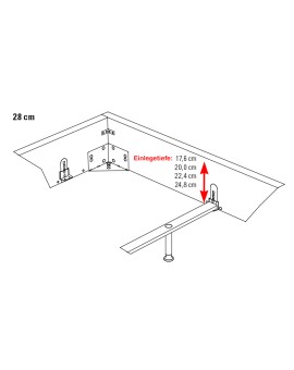 Die solide Konstruktion mit den im Korpus liegenden Gewinden und den damit verbundenen Metalleckwinkeln erlaubt maximale Stabilität für viele Jahre. Die Liegehöhe und die Einlegetiefe ist 4-fach höhenverstellbar. Dabei reicht die Einlegetiefe von maximal 24,8 cm bis minimal 17,6 cm. Somit ist der Silenzio 28 Bettrahmen auch ideal für höhere Matratzen und Lattenroste bestens geeignet. Entscheiden Sie ganz einfach bei sich zu Hause, wie weit die Matratze über den Bettrahmenrand hinausragen soll. Ab der Breite 160 cm ist zusätzlich auch eine höhenverstellbare Mitteltraverse im Lieferumfang enthalten. Die Lattenroste liegen so in der Bettmitte vollflächig auf der Traverse auf.