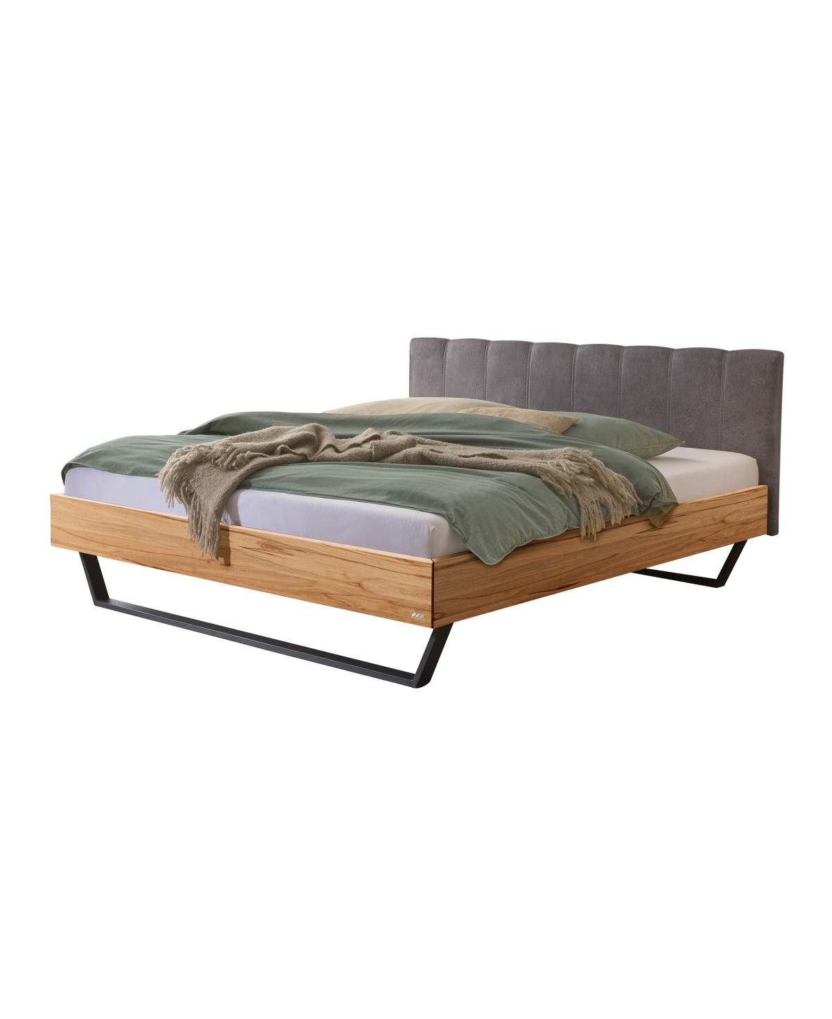 Das elegante Hasena Edition pronto Wood Massivholzbett Enrico überzeugt mit seinem zeitlosen und schlichten Design. Die Kombination aus dem, mit geraden Steppnähten versehenen, Kopfteil in der schiefergrauen Farbe Buffalo shale (720), dem Bettrahmen aus freundlichem Wildbuchenholz (87) und den Metallfußkufen in der Farbe anthracit (16) verleiht dem Schlafzimmer ein ansprechendes und einladendes Ambiente, welches zum Wohlfühlen und Träumen einlädt.