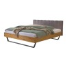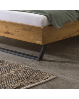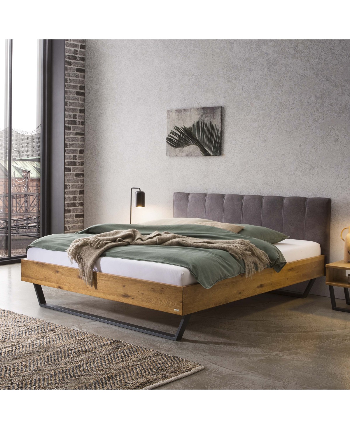 Das elegante Hasena Edition pronto Wood Massivholzbett Enrico überzeugt mit seinem zeitlosen und schlichten Design. Die Kombination aus dem, mit geraden Steppnähten versehenen, Kopfteil in der schiefergrauen Farbe Buffalo shale (720), dem Bettrahmen aus rustikalem Wildeichenholz (99) mit Rissen, Ästen und Markstrahlen und den Metallfußkufen in der Farbe anthracit (16) verleiht dem Schlafzimmer ein ansprechendes und einladendes Ambiente, welches zum Wohlfühlen und Träumen einlädt.
