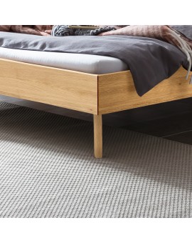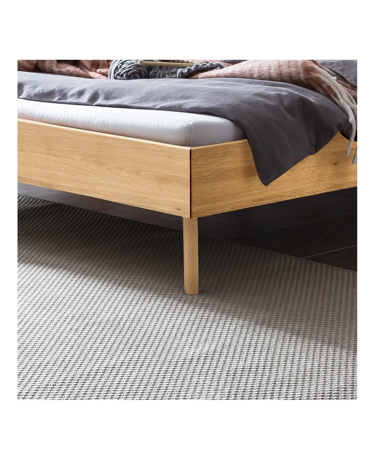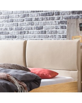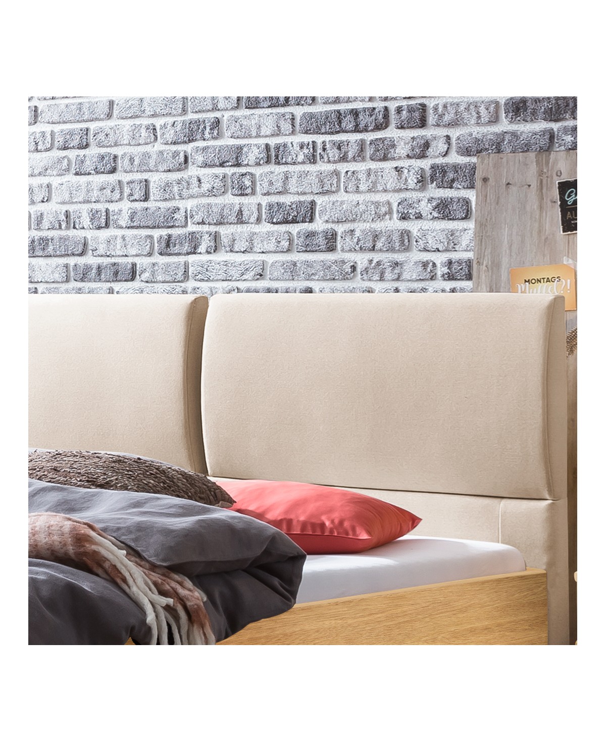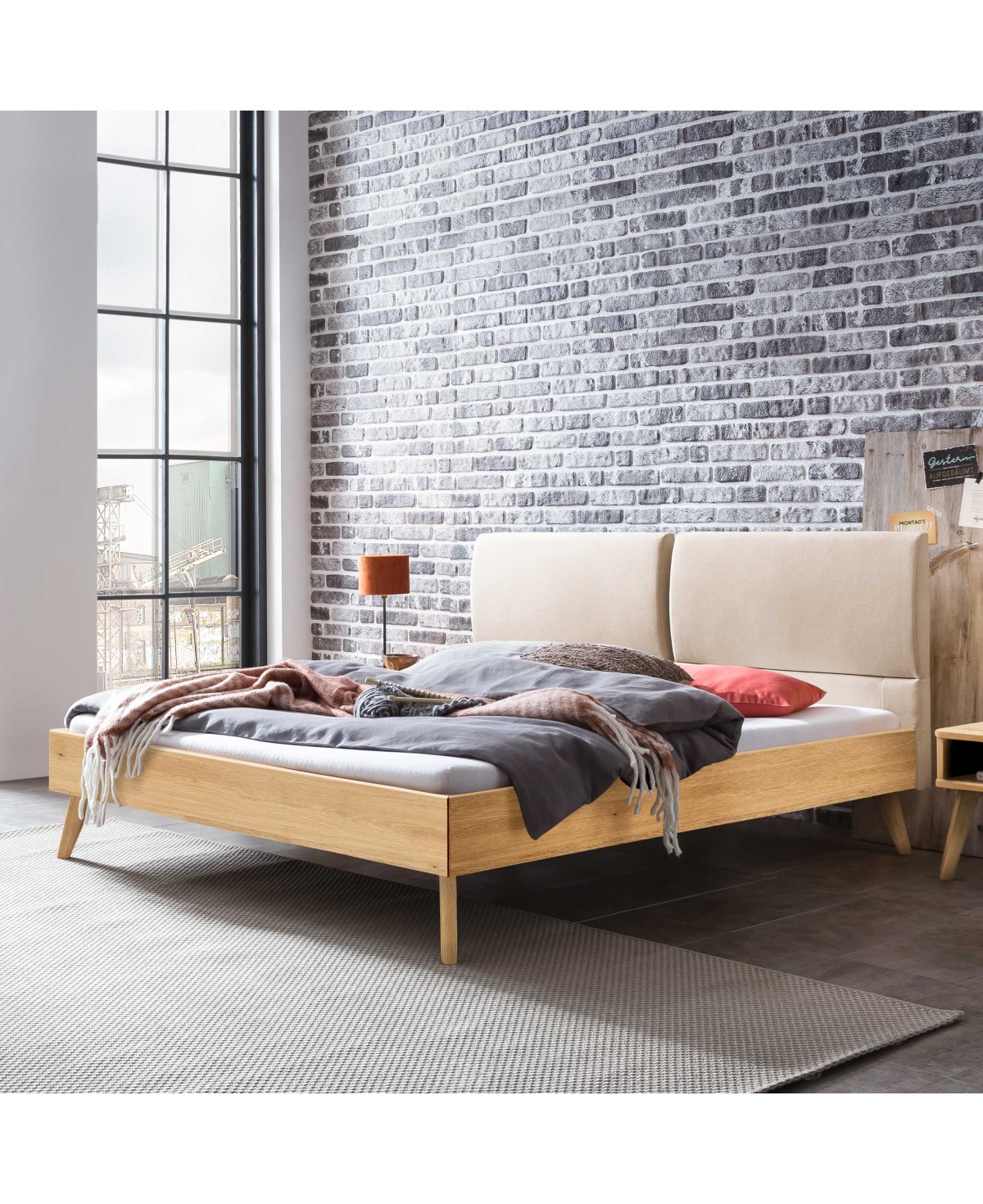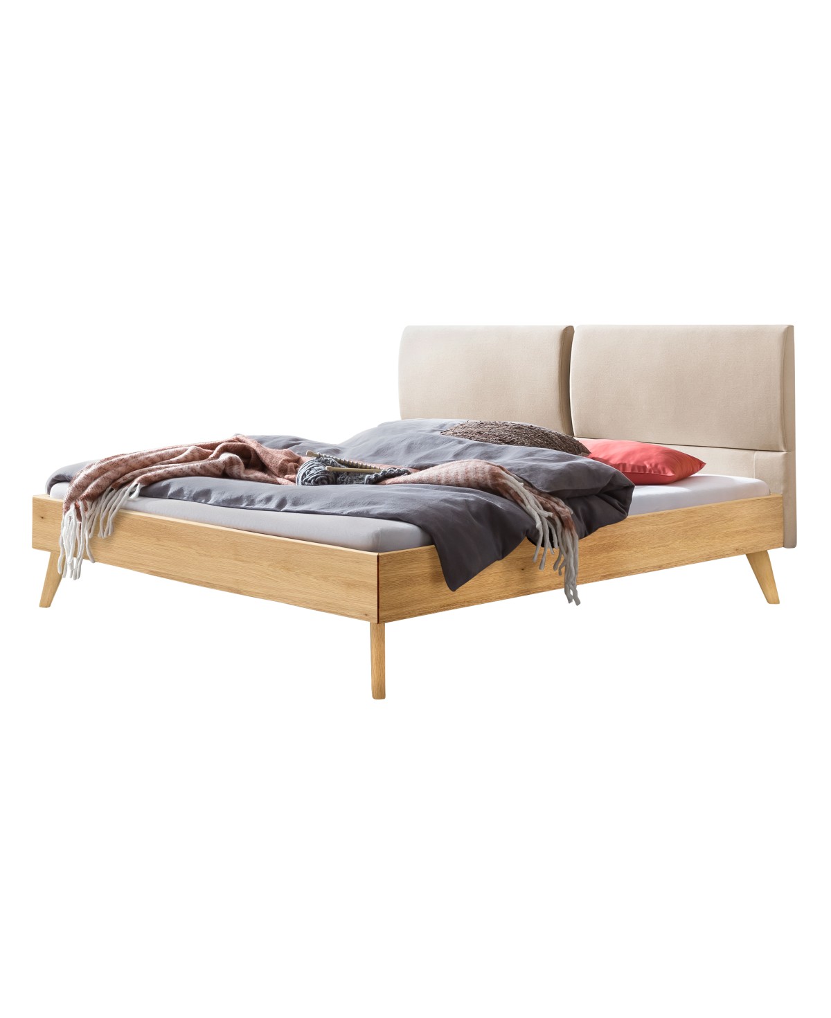 Mit dem stilvollen Hasena Edition pronto Wood Massivholzbett Matteo wird dem Schlafzimmer ein hochwertiges und ansprechendes Ambiente verliehen. Das zweigeteilte Stoffkopfteil in Pepe beige (327) harmoniert wunderbar mit dem Bettrahmen und den leicht schräg verlaufenden Füßen in der freundlichen Farbe Eiche bright (74) und schafft in Kombination eine zeitlose und einladende Atmosphäre.