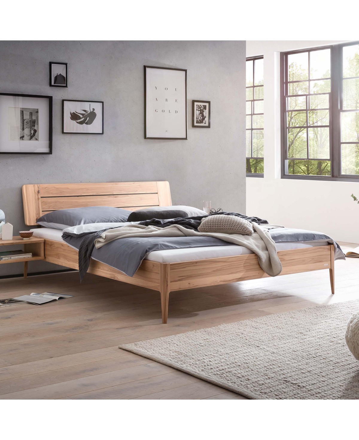 Mit dem Hasena Lounge Bett Busseto in Wildbuche natur wird ein einladendes und freundliches Ambiente im Schlafraum geschaffen. Der Bettrahmen mit abgerundeten Eckelementen harmoniert perfekt mit dem Sprossenkopfteil und den schmalen, filigranen Füßen und schafft durch das natürliche Wildbuchenholz mit Rissen, Ästen und Markstrahlen eine moderne Optik und einmalige Designsprache.