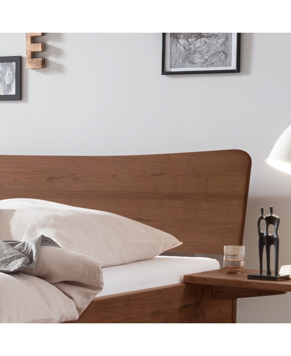 Für eine edle Atmosphäre kann mit dem Hasena Designbett Caluso in Nussbaum gesorgt werden. Das wunderschön geschwungene Kopfteil, die schmal verlaufenden, konisch geformten Füße und der Bettrahmen mit abgerundeten Eckelementen schaffen eine optische Leichtigkeit und verleihen dem Schlafzimmer ein zeitloses und elegantes Ambiente.