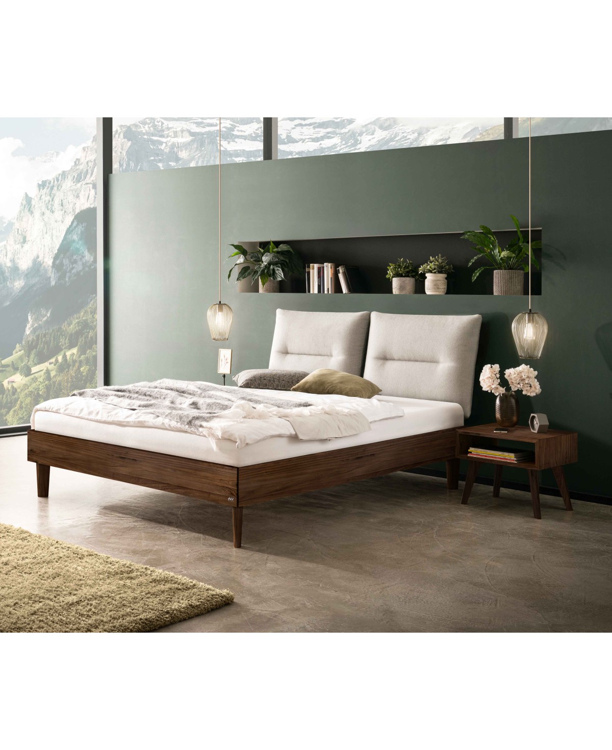 Das extra hohe Kopfteil mit weichem Strukturstoff in beige verleiht dem Hasena Bergamo Bett Emilia in Kombination mit dem edlen Nussbaumholz einen ganz besonderen Charme. Das Nussbaumholz mit seiner feinen Struktur bringt auch in Ihren Schlafraumeinen Hauch von Luxus. Der verwendete Stoff des Kopfteils wird aus 100% recycled PET hergestellt und ist eine ökologische Alternative zu herkömmlichen Polsterstoffen, die aus neuen Materialien hergestellt werden. Gewonnen wird er aus Plastikflaschen und Verpackungen. Durch die spezielle Verarbeitung ist der Stoff kuschelig weich, strapazierfähig und von einem Material das gänzlich neu hergestellt wird nicht zu unterscheiden.
