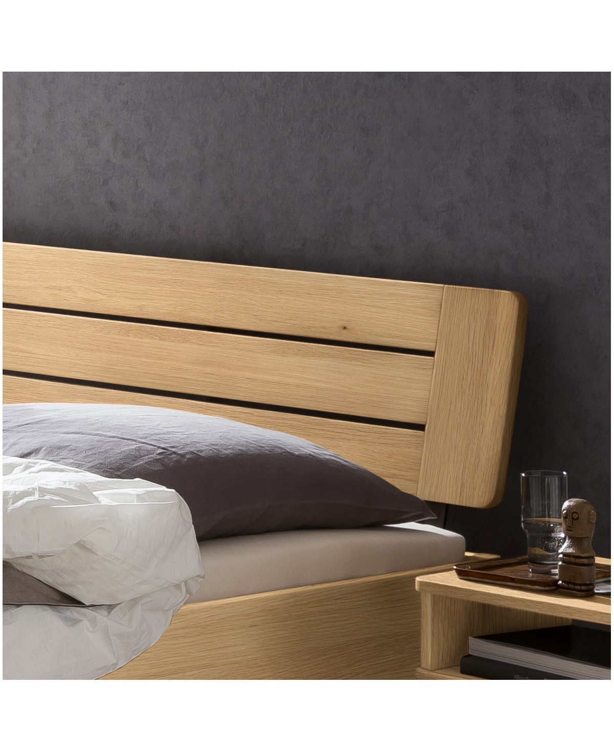 Das verwendete Eichenholz wird sorgfältig verarbeitet. Durch die durchdachte Konstruktion mit massiven Metalleckwinkeln und im Korpus liegenden Gewinden ist das Hasena Lounge Bett Rubiera besonders stabil und begeistert auch noch in Jahren mit herausragender Qualität.