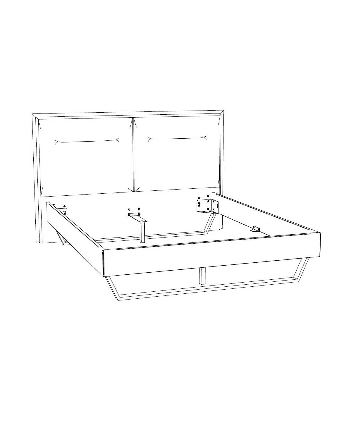 Das Design überzeugt durch seine klare, ruhige Formensprache und ein imposantes, wandpaneelartiges Kopfteil mit weichem Stoffbezug, das dem Raum eine eindrucksvolle Präsenz verleiht. Gleichzeitig sorgen stabile Metallkufen in Komforthöhe für eine schwebende Optik und unterstreichen die moderne Leichtigkeit dieses Modells.