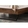Das Design überzeugt durch seine klare, ruhige Formensprache und ein imposantes, wandpaneelartiges Kopfteil mit weichem Stoffbezug, das dem Raum eine eindrucksvolle Präsenz verleiht. Gleichzeitig sorgen stabile Metallkufen in Komforthöhe für eine schwebende Optik und unterstreichen die moderne Leichtigkeit dieses Modells.