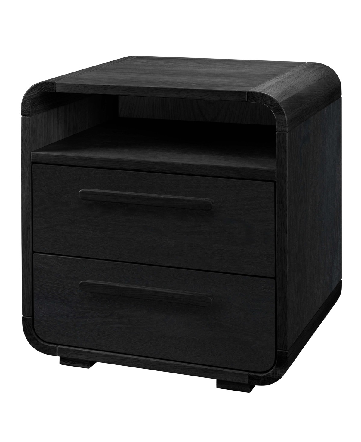 Raffiniert gestalteter und extra hoher Hasena Nachttisch Presley aus edlem Eichenholz mit zwei geräumigen Schubladen sowie einem offenen Fach. Durch die charakteristische Oberfläche und die sicht- und fühlbare Holzstruktur bietet der Nachttisch eine hochwertige Optik und eine angenehm natürliche Haptik. Die Kombination aus zwei geschlossenen Schubladen mit Softclose Einzügen und einem offenen Fach schafft eine spannende Optik. Die Liebe zum Detail wird besonders durch die abgerundeten Seitenkanten oben und unten mit den eingesetzten runden Elementen sichtbar.