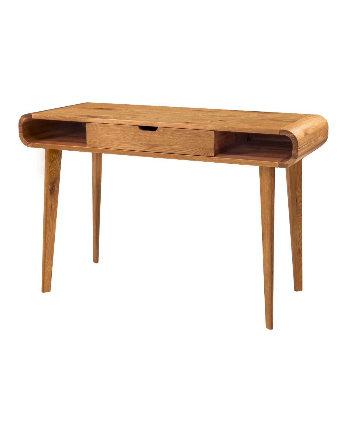 Der Hasena Schreibtisch Romano in der Ausführung Wildeiche vereint edle Materialien mit hochwertigem Design. Abgerundete Eckeinsätze und filigrane Füße sorgen für eine optische Leichtigkeit und zeitlose Eleganz. Durch die großzügige Oberfläche mit 120x50 cm bietet Romano viel Platz zum Arbeiten. Auch als Schminktisch oder schicker Ablagetisch im Schlafzimmer oder Ankleide zimmer macht der Sekretär eine ausgezeichnete Figur.
