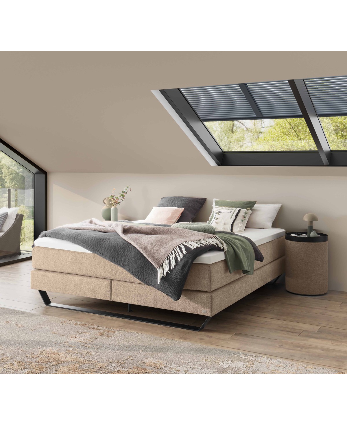 Stellen Sie sich vor, Sie sinken nach einem langen Tag in ein Bett, das schon beim ersten Anblick begeistert. Das Boxspringbett Julieta von Hasena verbindet zeitloses Design mit höchstem Komfort. Manchmal braucht es nicht mehr Raum, sondern mehr Freiheit: Julieta verzichtet bewusst auf ein Kopfteil und gewinnt dadurch maximale Flexibilität. Ob unter Dachschrägen, vor bodentiefen Fenstern oder als eleganter Solitär mitten im Raum – dieses Bett passt sich Ihrem Leben an, nicht umgekehrt.