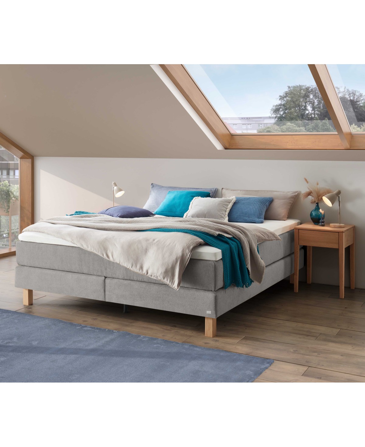 Nach einem langen Tag einfach ins Bett sinken und sofort wohlfühlen – genau dafür steht das Boxspringbett Carlota von Hasena. Es vereint modernen Komfort mit einem klaren, reduzierten Design und fügt sich mühelos in jede Wohnsituation ein. Da Carlota bewusst auf ein Kopfteil verzichtet, bleibt es besonders flexibel: ideal unter Dachschrägen, vor großen Fenstern oder frei im Raum platziert.