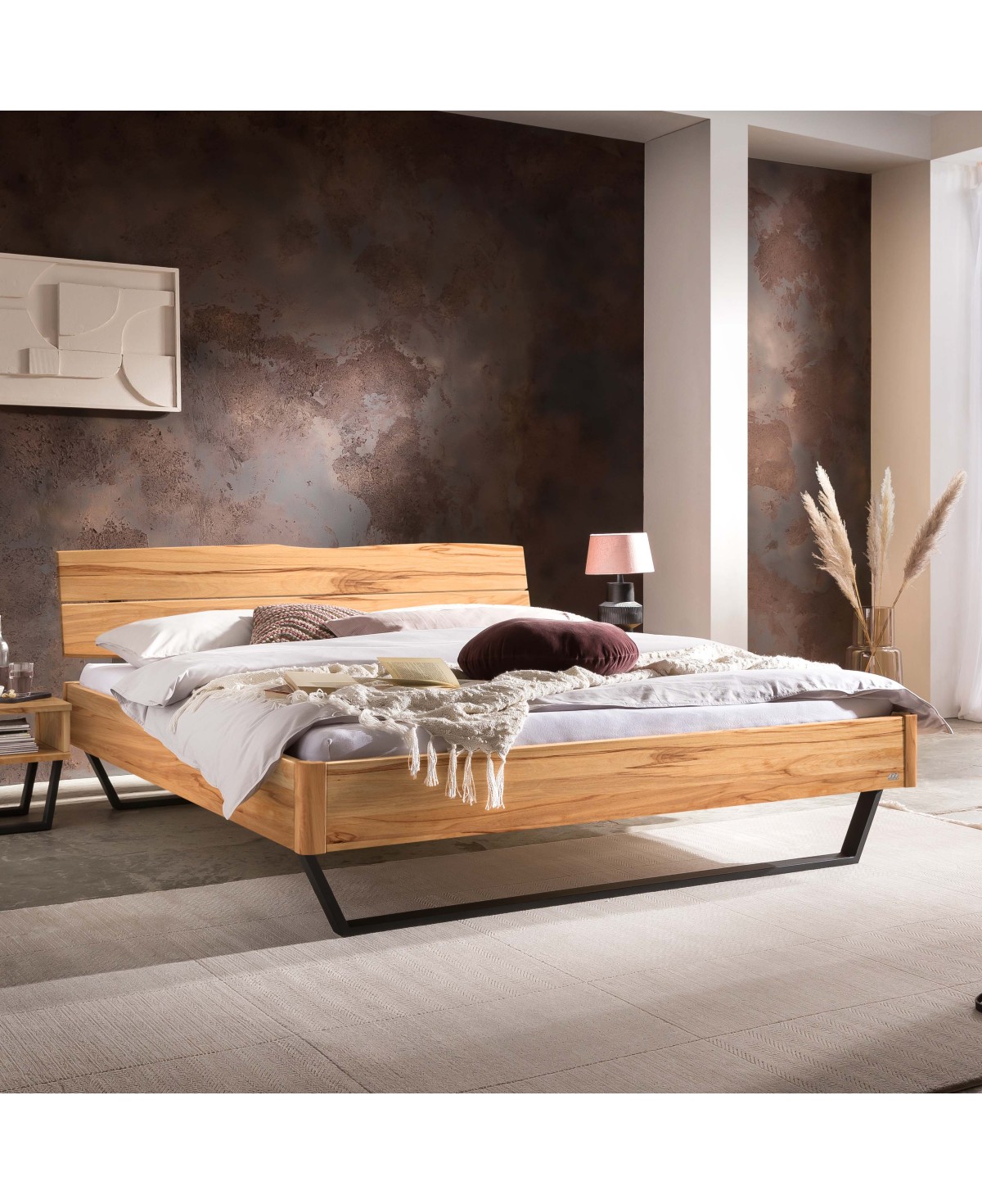 Mit dem lebendigen, massiven Wildbuchenholz, versehen mit natürlich vorkommenden Rissen, Ästen und Markstrahlen, wird das Designbett optimal abgerundet.