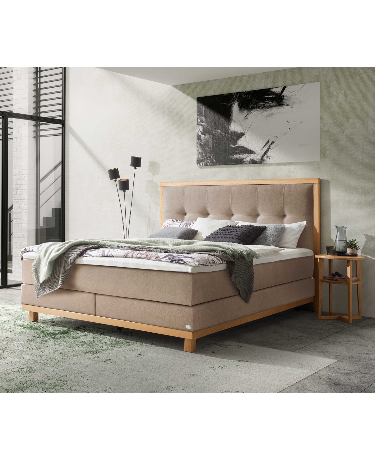 Das elegante und zeitlose Design des Hasena Boxspringbett Cecilia lädt zum Entspannen und Erholen ein. Hochwertige, aufeinander abgestimmte Materialien und Farben und die unaufgeregte geradlinige Optik, schaffen ein angenehmes Ambiente und bringt skandinavischen Chic in Ihren Schlafraum. Die Kombination aus warmen Eichenholz am Bettrahmen, an der Einfassung am abgesteppten Kopfteil, sowie den Massivholzfüßen und dem weichen Webstoff im freundlichen Farbton sand, schafft eine angenehme Wohlfühlatmosphäre. Kreieren Sie Ihr Traumschlafzimmer mit dem Boxspringbett Cecilia und den schicken Zubehörmöbeln und erleben Sie Schlafkomfort, Design und Qualität auf hohem Niveau.