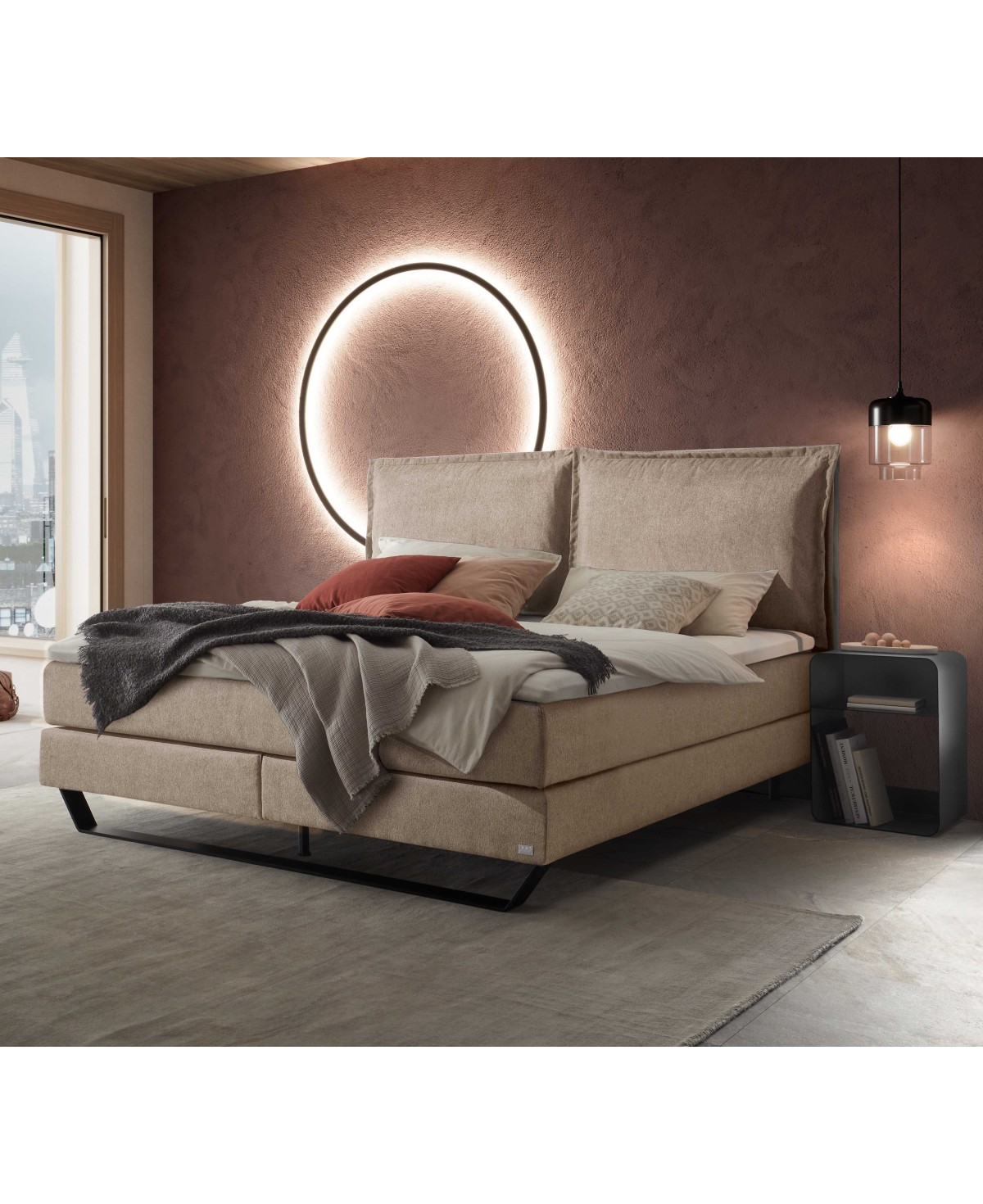 Kuscheln Sie sich nach einem anstrengenden Tag in die weichen Kissen des Hasne Boxspringbettes Celina. Die Kissen sind mit einem Klettverschluss am Paneel befestigt. So wird ein Verrutschen verhindert und sie können bei Bedarf auch abgenommen werden. Das klare und moderne Design von Celina schafft ein tolles Raumambiente und fügt sich perfekt in die unterschiedlichsten Einrichtungsstile ein. Dabei ist die Metallkufe in schwarz ein toller Kontrast zum hellen und weichen Webstoff in der Farbe sand.