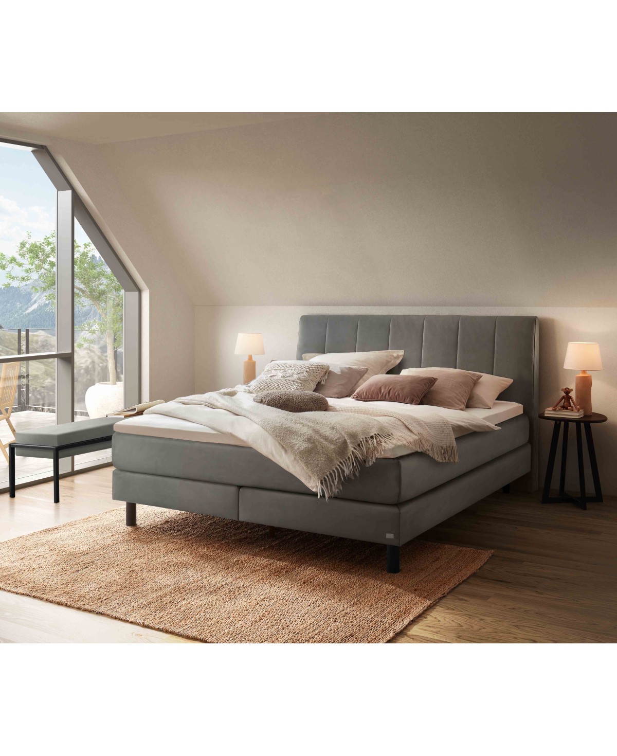 Die ersten Sonnenstrahlen tauchen den Raum in weiches Licht. Für einen Moment scheint alles still – nur Sie und das Gefühl von Ruhe. Donna ist genau das Boxspringbett für diese Augenblicke. Es vereint modernen Komfort mit einer sanften Eleganz, die sich unaufdringlich in jedes Schlafzimmer einfügt. Das hohe, weich gepolsterte Kopfteil lädt zum Anlehnen ein und vermittelt Geborgenheit. Seine dezente vertikale Steppung verleiht dem Design Struktur, ohne sich in den Vordergrund zu drängen – ein Spiel aus Klarheit und Wohnlichkeit, das Donna so besonders macht.