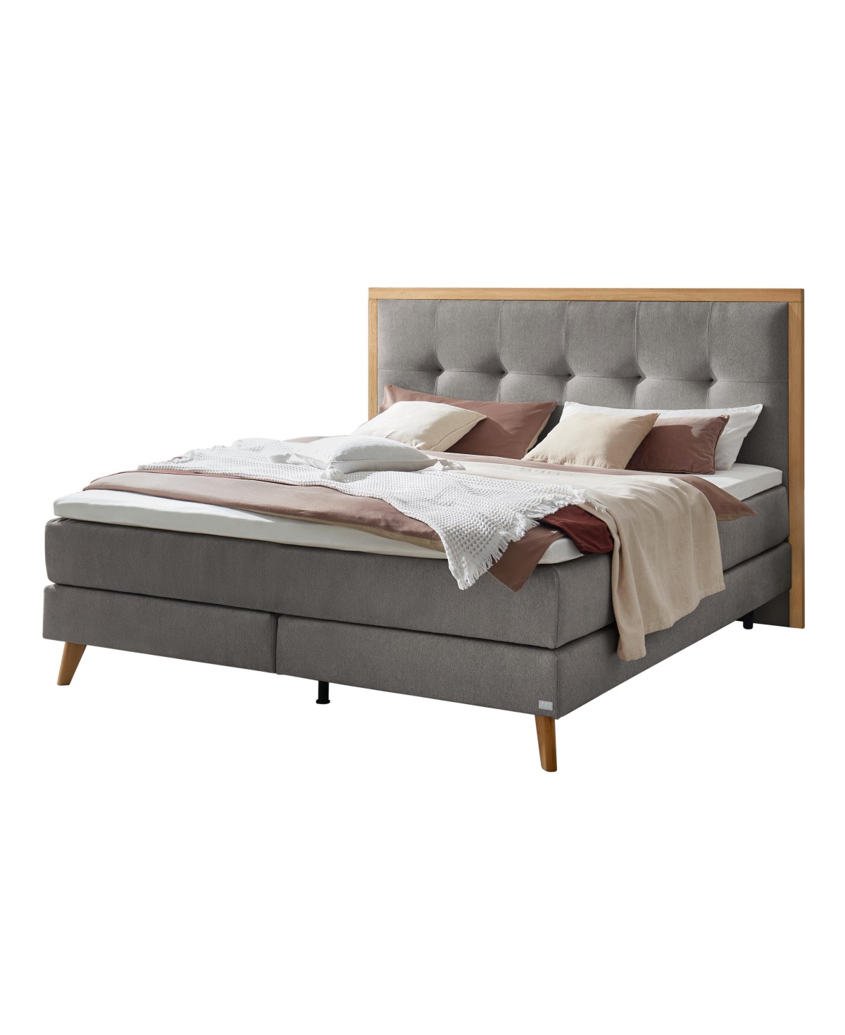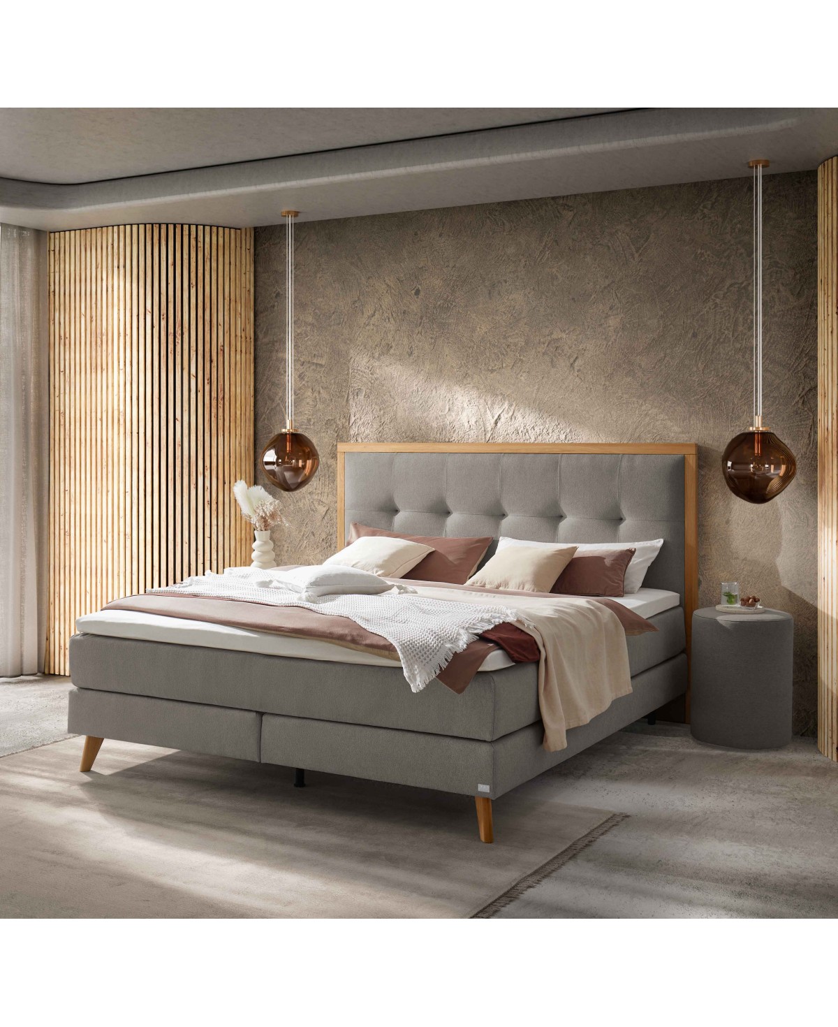 Wenn der Tag zur Ruhe kommt, entfaltet das Hasena Boxsprinbett Marisol seinen ganzen Charme. Das elegante Boxspringbett verbindet Komfort, Design und Qualität auf höchstem Niveau. Das weich gepolsterte Kopfteil mit quadratischer Steppung lädt zum Entspannen ein, während der umlaufende Massivholzrahmen und die fein geformten Holzfüße aus heller Eiche eine optische Leichtigkeit und hervorragende Stabilität vereinen. Für erholsamen Schlaf und eine lange Freude an Ihrem neuen Bett – Nacht für Nacht. Der hochwertige Webstoff in der eleganten Farbe grey rundet das stillvolle Design gekonnt ab.