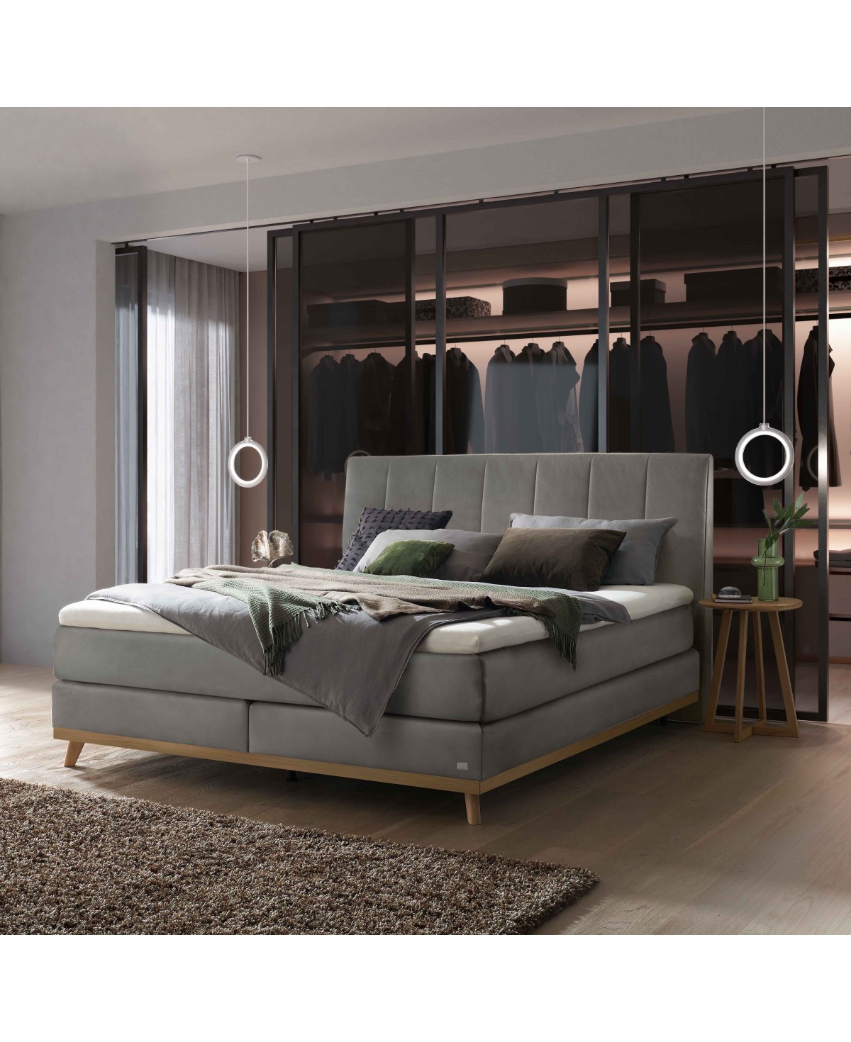 Einfach zur Ruhe kommen und entspannen. Mit dem Hasena Boxspringbett Stefania machen Sie Ihr Schlafzimmer zur Erholungsoase. Schickes Design, hochwertige Materialien und eine feine Verarbeitung schaffen ein Bett der Spitzenklasse. Die filligran und leicht schräg verlaufenden Füße und der umlaufende Rahmen aus hellem und fein gemasertem Eichenholz sind perfekt aufeinander abgestimmt und passen hervorragend zum hochwertigen Stoffbezug in Kunstlederoptik in der edlen Farbe steel.