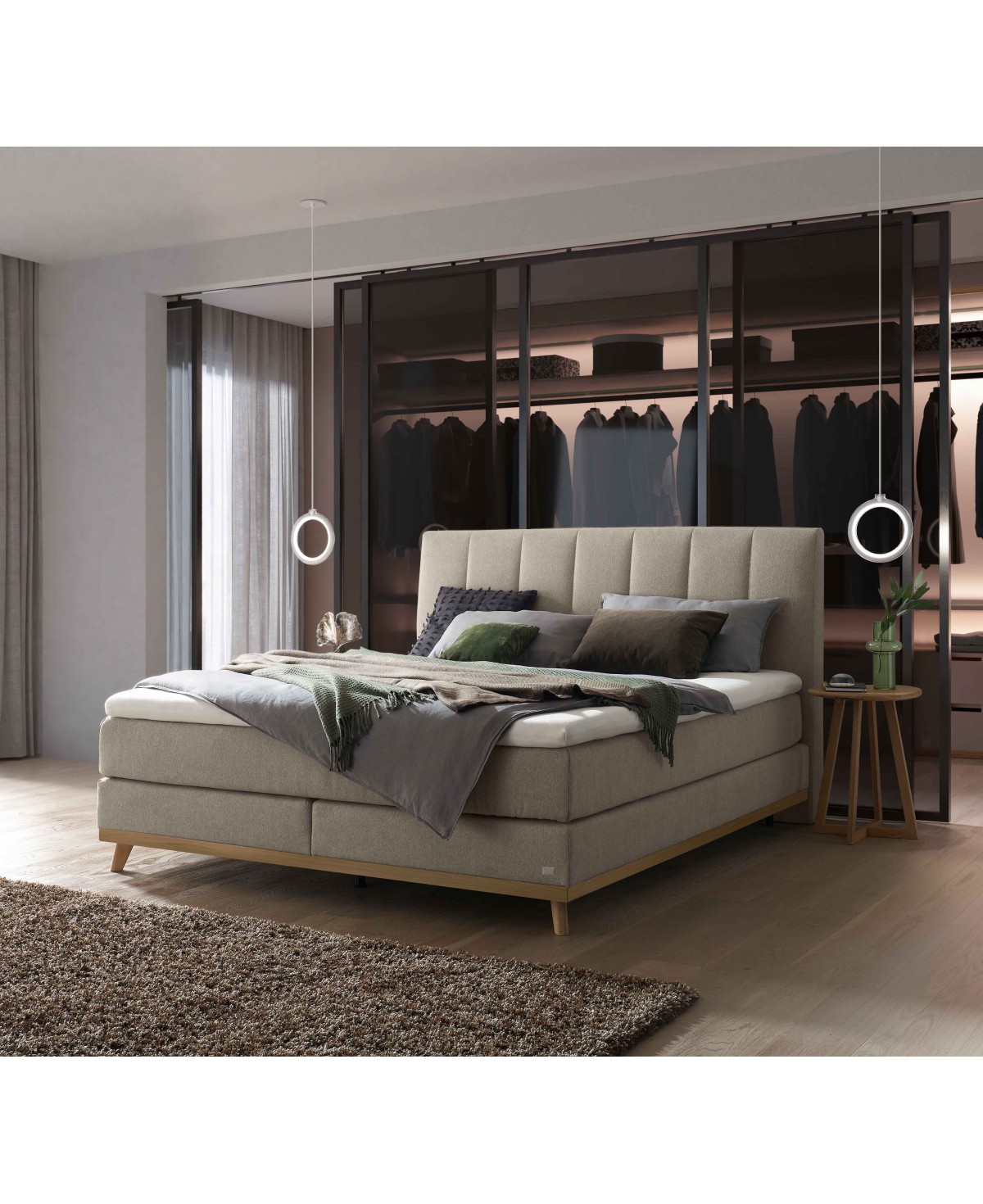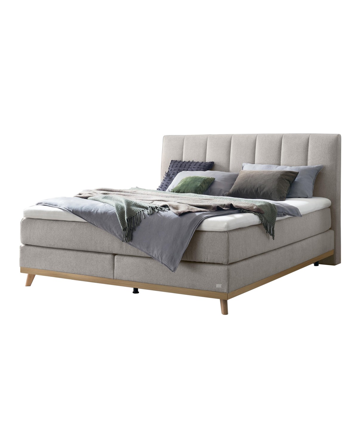 Einfach zur Ruhe kommen und entspannen. Mit dem Hasena Boxspringbett Stefania machen Sie Ihr Schlafzimmer zur Erholungsoase. Schickes Design, hochwertige Materialien und eine feine Verarbeitung schaffen ein Bett der Spitzenklasse. Die filligran und leicht schräg verlaufenden Füße und der umlaufende Rahmen aus hellem und fein gemasertem Eichenholz sind perfekt aufeinander abgestimmt und passen hervorragend zum wunderbar hautsympathischen Stoffbezug in der topmodernen Farbe light grey.