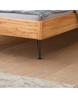 Mit seiner natürlichen Wärme und modernen Leichtigkeit wird das Hasena Lounge Designbett Locarno zum stilvollen Mittelpunkt im Schlafzimmer. Ein besonderes Highlight des Locarno Bettes ist das leicht geschwungene Kopfteil, das dem Bett eine ruhige, ausgewogene Silhouette verleiht. Es harmoniert wunderbar mit dem Bettrahmen mit abgerundeten Ecken und den schlanken, schräg verlaufenden Metallfüßen, die eine luftige und elegante Atmosphäre in den Schlafraum bringen. Die lebendige Struktur des Wildbuchenholzes, versehen mit gewollten Rissen und Ästen, rundet das Bett optimal ab.