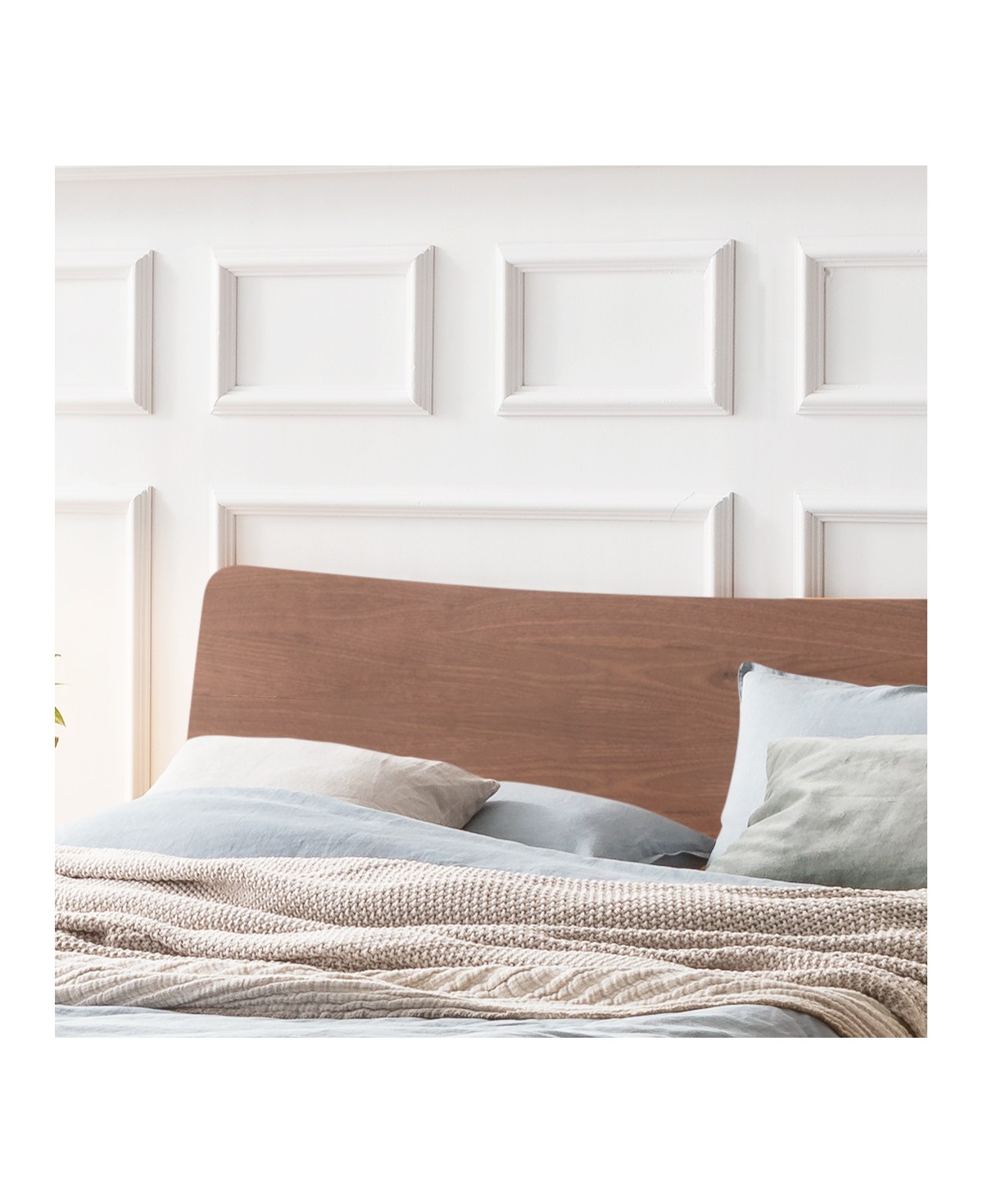 Mit dem edlen, dunklen Nussbaumholz wird das Hasena Lounge Designbett Locarno zum Mittelpunkt im Schlafzimmer. Ein besonderes Highlight des Locarno Bettes ist das leicht geschwungene Kopfteil, das dem Bett eine ruhige, ausgewogene Silhouette verleiht. Es harmoniert wunderbar mit dem Bettrahmen mit abgerundeten Ecken und den schlanken, schräg verlaufenden Metallfüßen, die eine luftige und elegante Atmosphäre in den Schlafraum bringen.