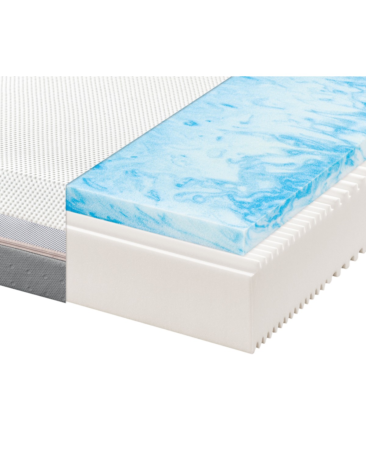 Erleben Sie feinen Schlafkomfort durch die Kombination eines elastischen 7-Zonen Komfortschaumkerns mit Wellenprofilierung und einer wunderbar anschmiegsamen und druckentlastenden Gelart Auflage mit 6 cm auf der Oberseite. Sanft den Körper umschließend, sorgt die Komfortauflage für ein entspannendes Liegegefühl. Das Wellenprofil ist in eine körpergerechte 7 Zonen Struktur eingeteilt. So können die Lordose-Bereiche optimal unterstützt werden, wogegen z. B. der Schulterbereich sanft einsinken und entlastet werden kann. Mit 25 cm Gesamthöhe kann sich die Matratze optimal an die verschiedensten Körpertypen anpassen und ermöglicht zudem eine angenehme Sitzhöhe.