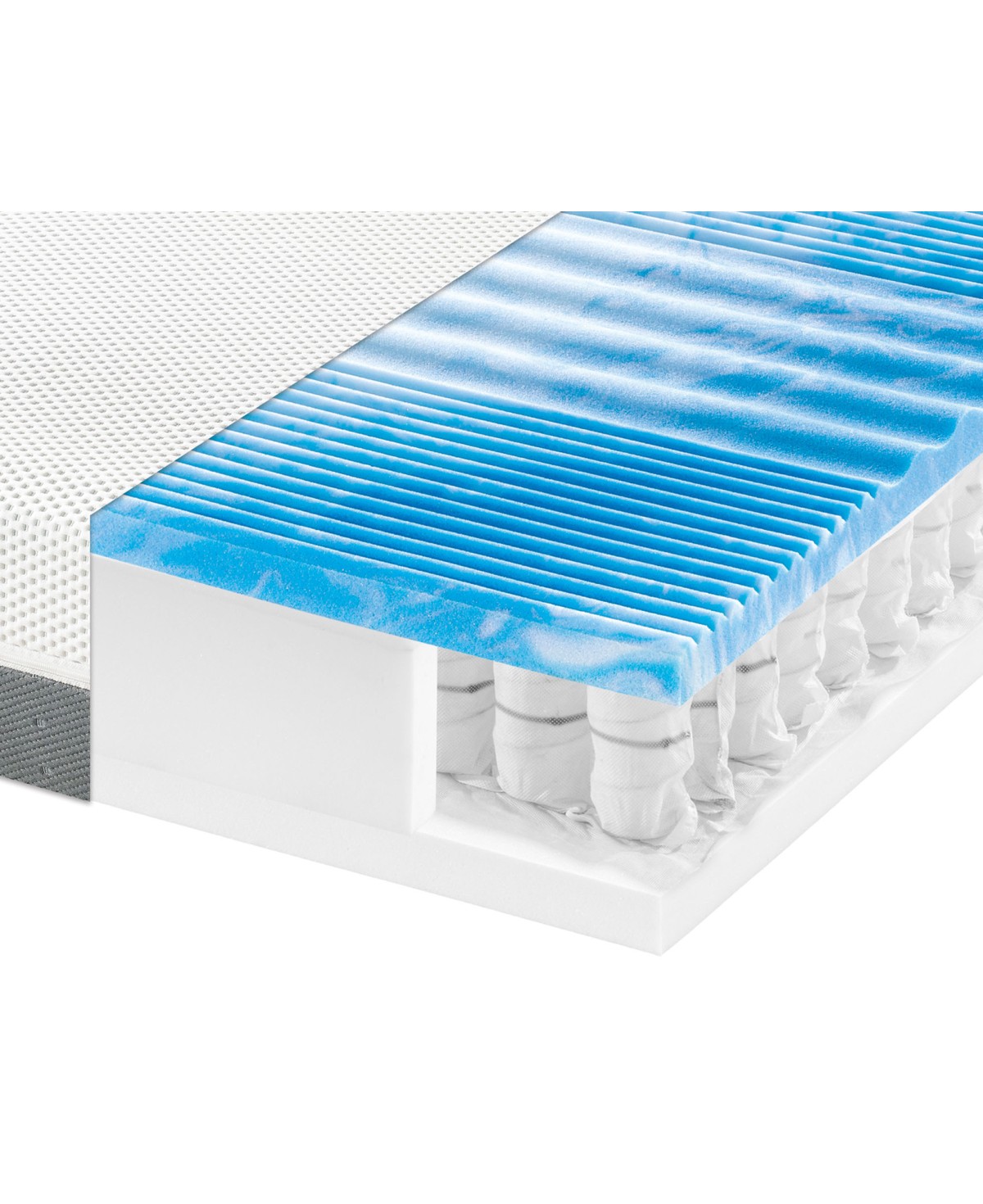 Die Kombination aus dem stützenden Taschenfederkern, mit 7 körpergerechten Liegezonen, und der druckentlastenden und sanft den Körper umschließenden Gelart Schaumauflage mit 4 cm Höhe schafft ein angenehm komfortables Liegegefühl. Elastische Federn in einzelnen Taschen sind in eine körpergerechte 7 Zonen Struktur eingeteilt. So können die Lordose-Bereiche optimal unterstützt werden, wogegen z. B. der Schulterbereich sanft einsinken und entlastet werden kann. Mit 20 cm Gesamthöhe kann sich die Matratze optimal an die verschiedensten Körpertypen anpassen und ermöglicht zudem eine angenehme Sitzhöhe.