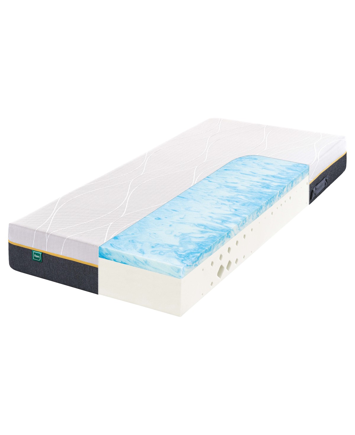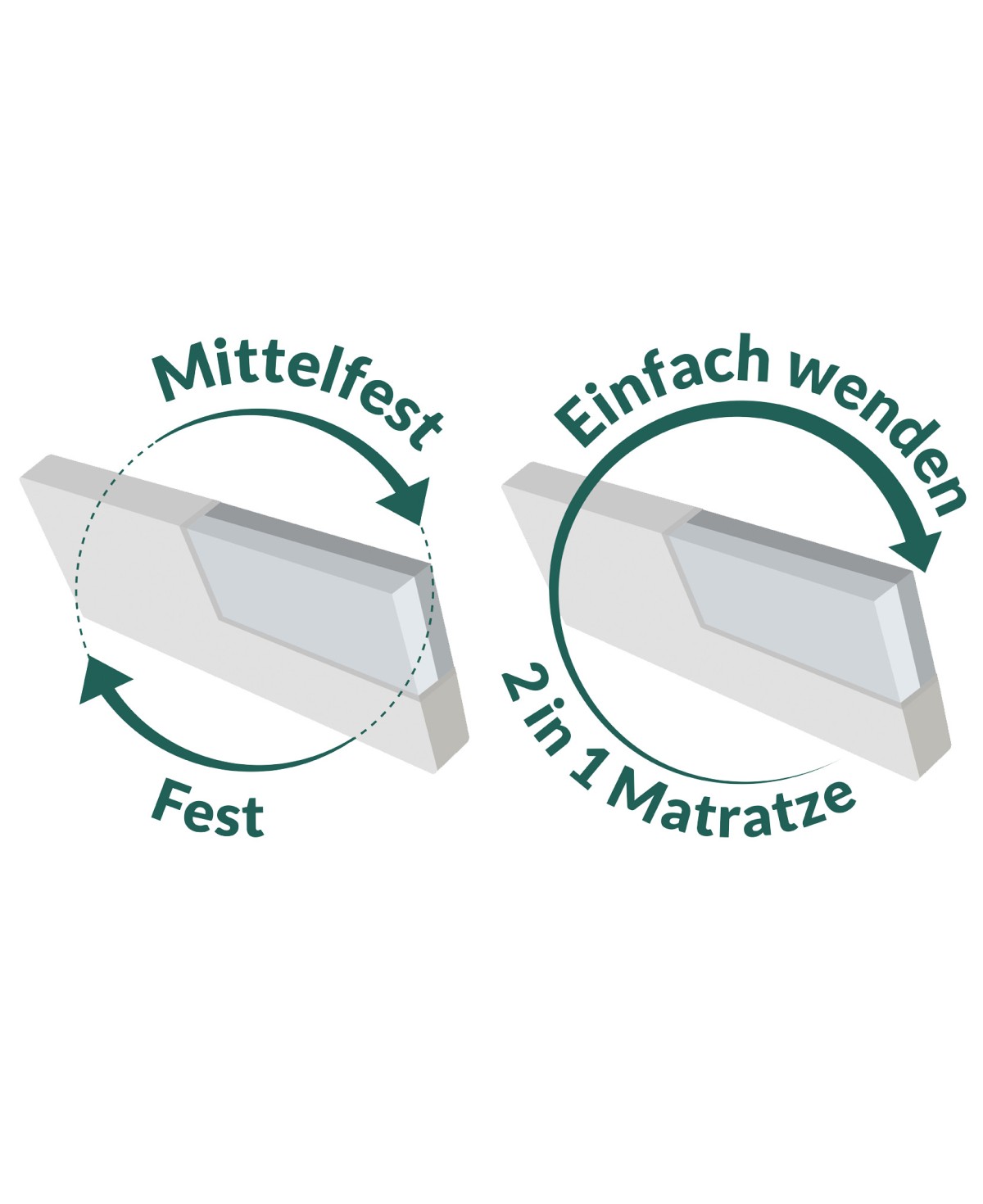 Ist Ihnen die blaue Liegeseite zu weich, drehen Sie die Matratze einfach auf die weiße Seite und schon liegen Sie einen Härtegrad fester. Die 7-Zonen-Aufteilung ist auch auf dieser Seite genau gleich angeordnet.