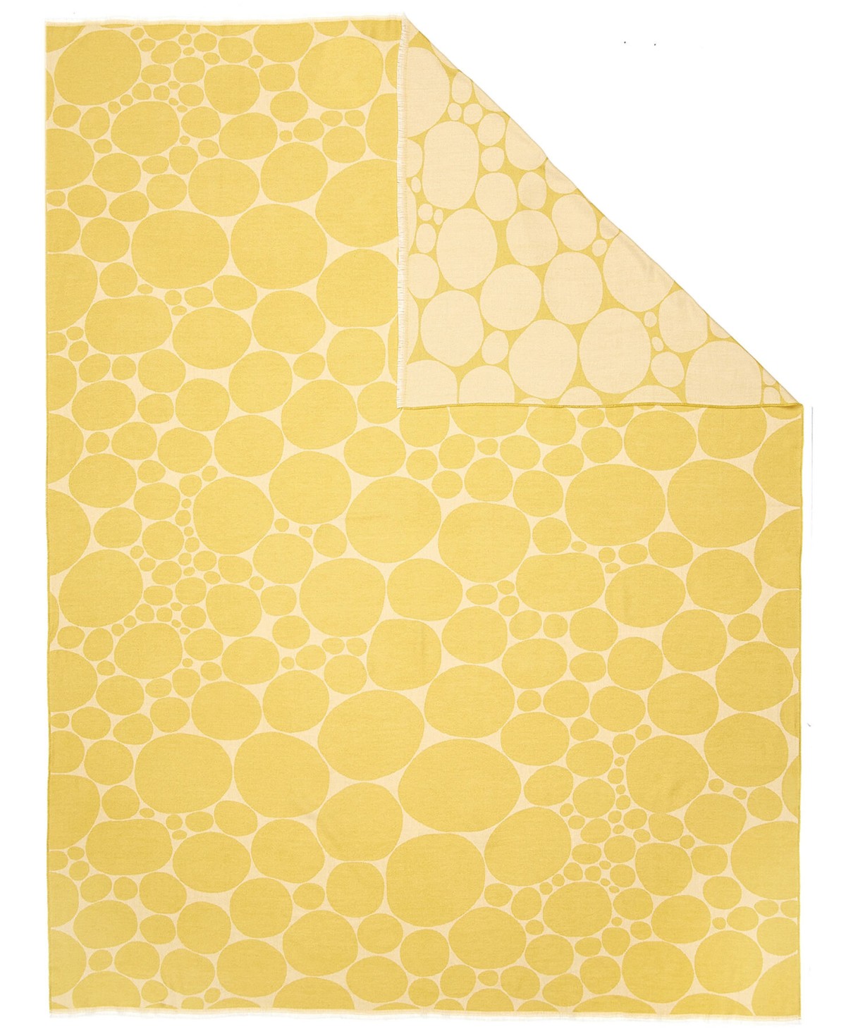 Das großzügige Maß von 155x200 cm bietet viel Platz und Flexibilität. Das organische Blasen-Design ist inspiriert von Luftblasen und macht das Plaid zu einem echten Blickfang. Besonders praktisch: Die Decke ist beidseitig verwendbar – eine Seite zeigt sich in hellen Tönen, die andere farbintensiv. So können Sie je nach Stimmung oder Einrichtung immer wieder neue Akzente setzen.