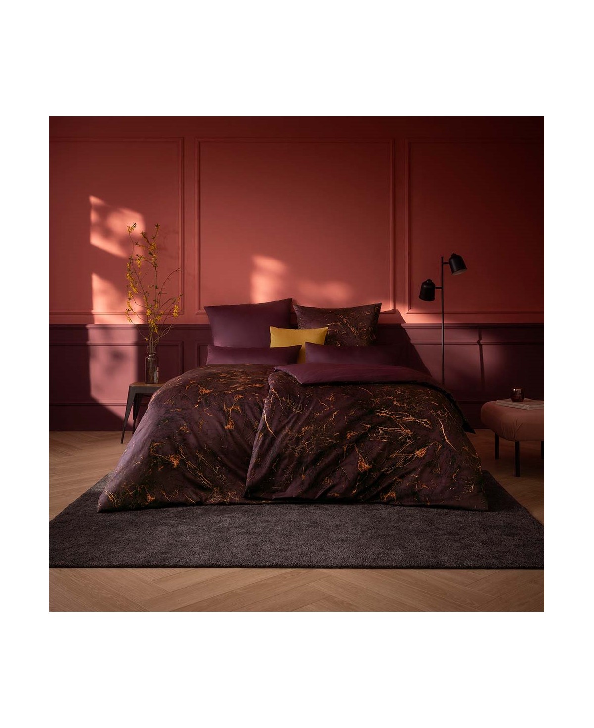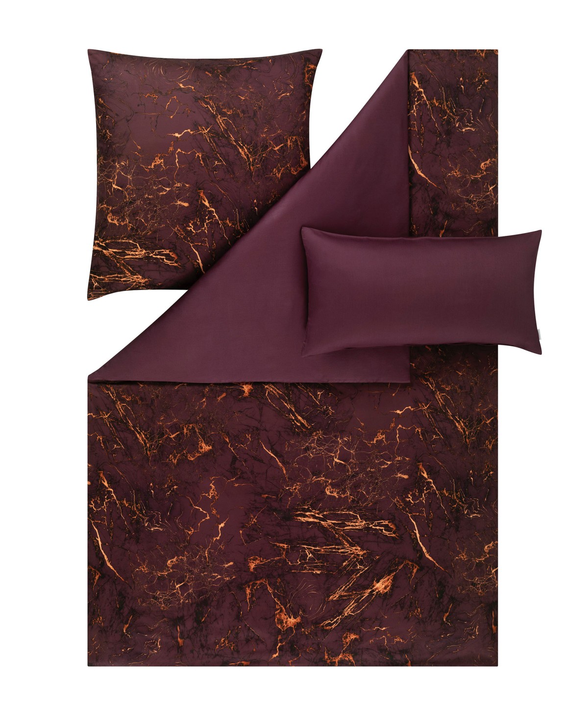 Die in weinrot gehaltene und mit Marmordesign bestückte Estella Mako Satin Bettwäsche Raphael sorgt mit ihrer zeitlosen Eleganz für eine besondere Atmosphäre im Schlafzimmer. Durch ihre besonders feine Webart und die verwendete mercerisierte Baumwolle, ist die Mako Satin Bettwäsche sehr anschmiegsam und seidig weich.