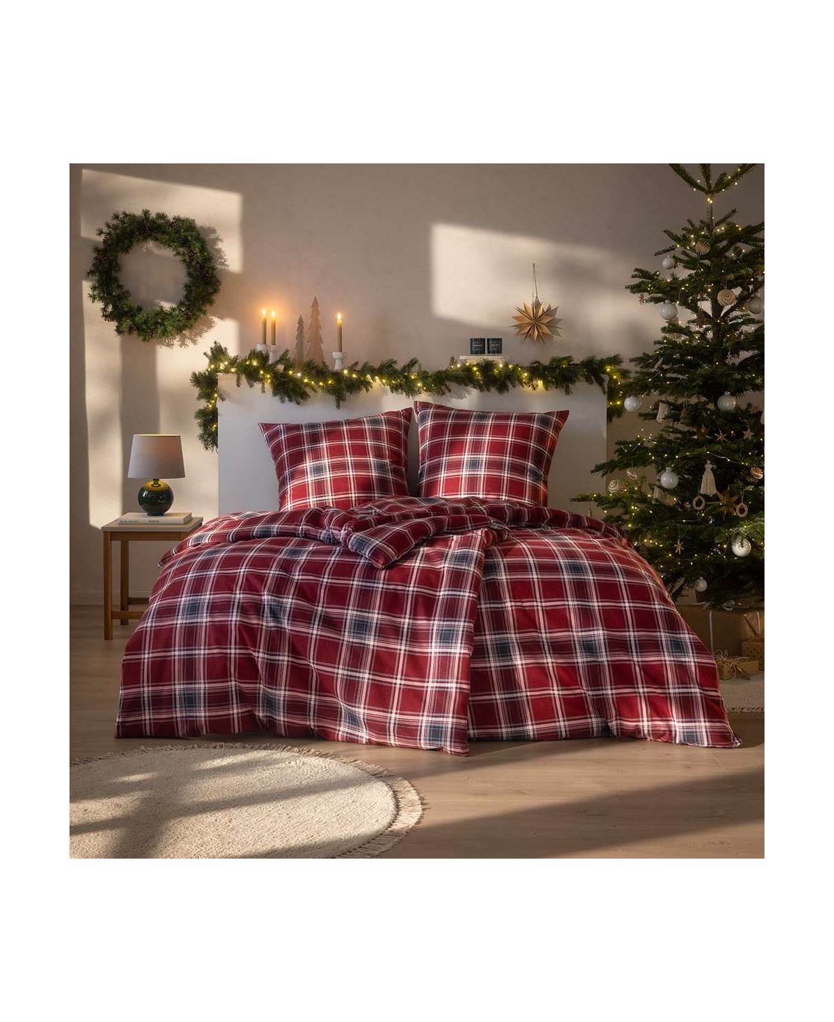 Das klassische Karomuster-Design der Estella Kuschelflanell Bettwäsche Quirin erstrahlt in kräftigem Rot, feinem Weiß und dezentem Graphit, schafft im Schlafzimmer eine behagliche und einladende Atmosphäre und eignet sich somit wunderbar für die festliche Jahreszeit.