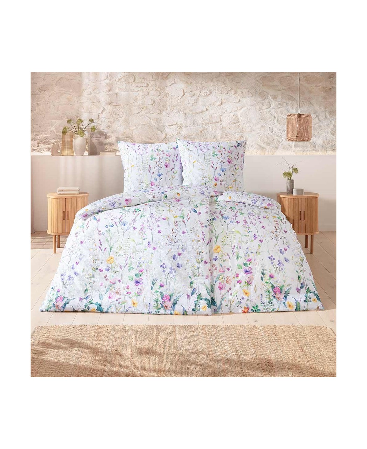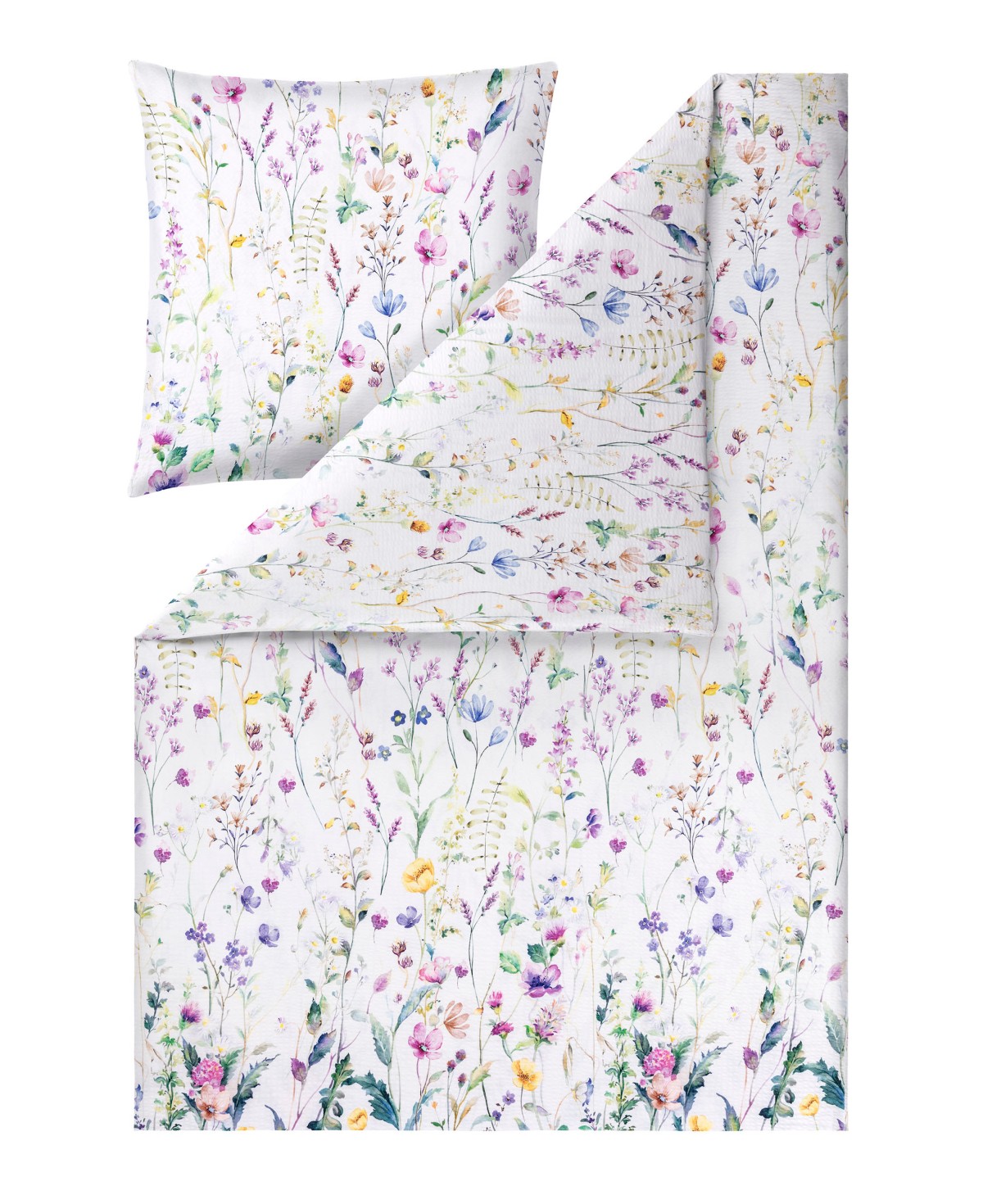 Mit ihrem zarten Wildblumenmuster in schönsten Blau-, Lila- und Gelbtönen zaubert die Estella Seersucker Bettwäsche Jane eine tolle, lebendige Atmosphäre in den Schlafraum und läutet den Beginn des Frühlings ein.